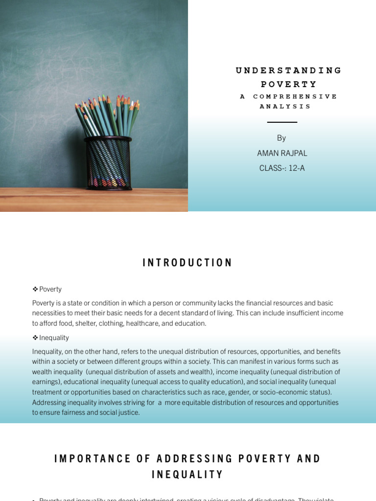• Poverty is a pervasive global issue affecting millions of lives. It is characterized by a lack of access to