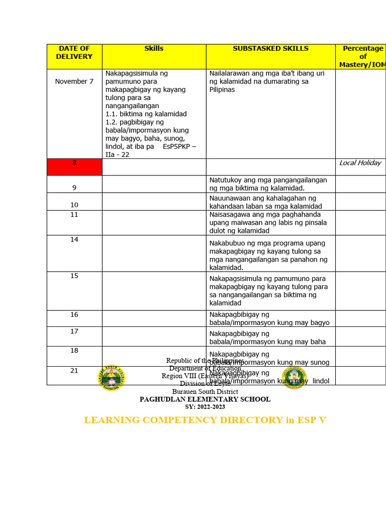 LEARNING COMPETENCY DIRECTORY in ESP V
