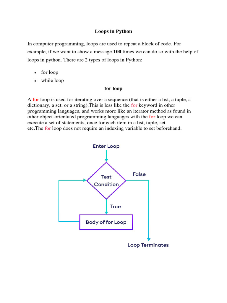 A for loop is used for iterating over a sequence (that is either a list, a tuple, a