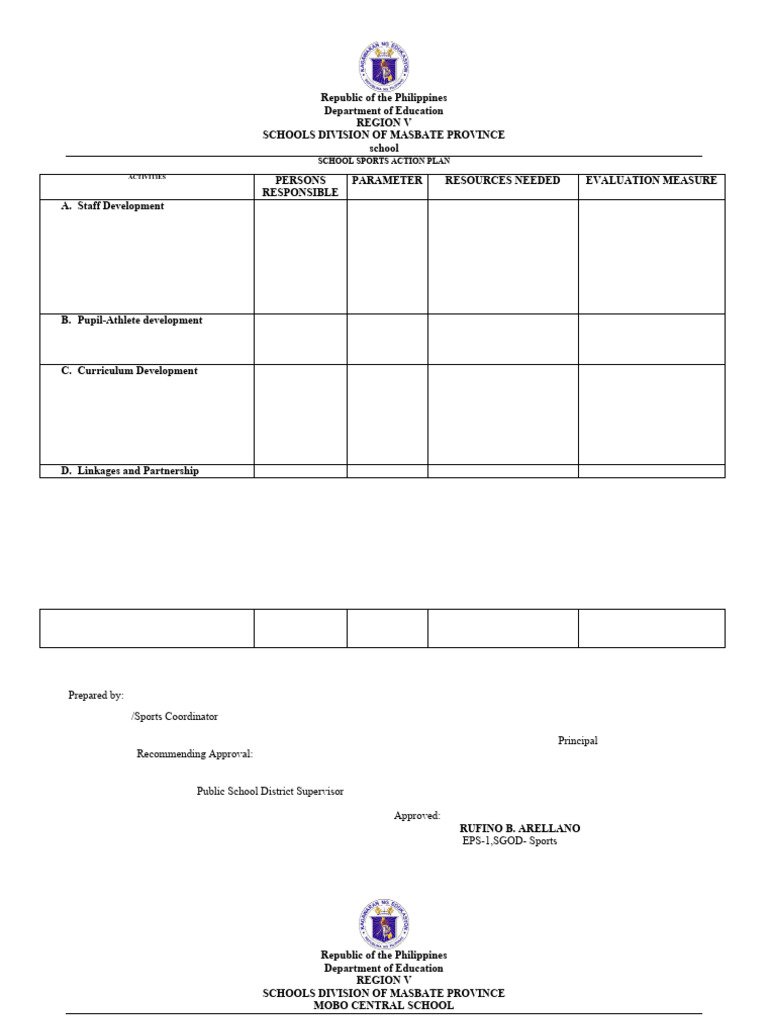 Sports implementation Certificate of Year Round School Head, Sports Snacks 1,000 MOOE