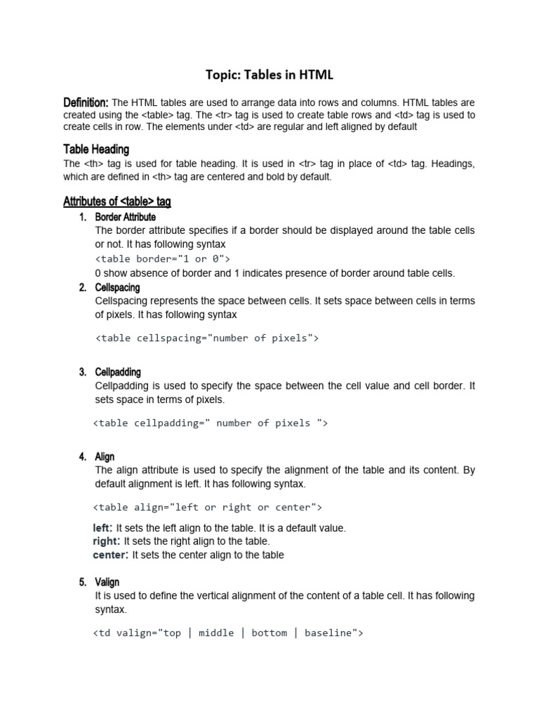 Topic: Tables in HTML