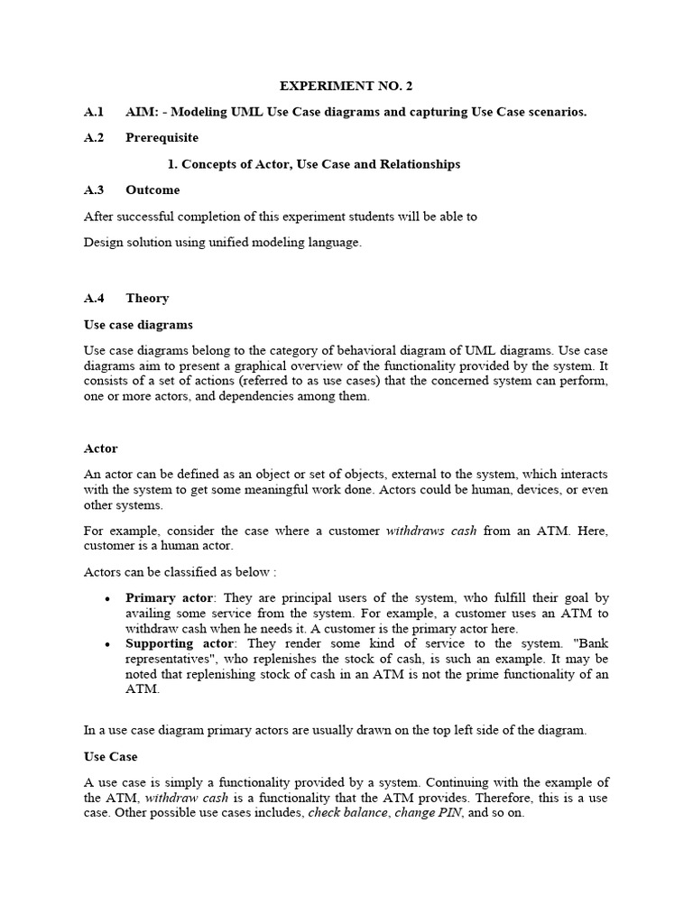 A.1 AIM: - Modeling UML Use Case diagrams and capturing Use Case scenarios.