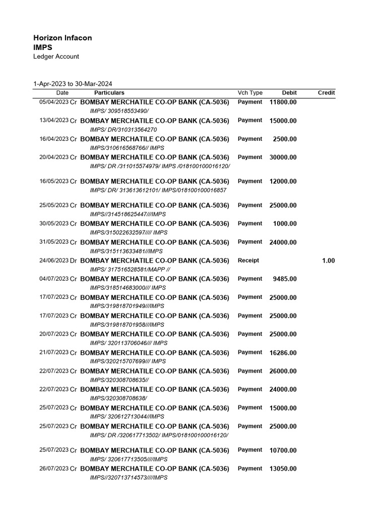 23/03/2024 Cr BOMBAY MERCHATILE CO-OP BANK (CA-5036) Payment 25000.00