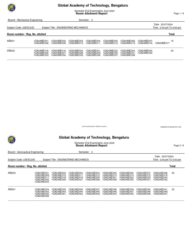 Room Allotment Report Page 6 / 8