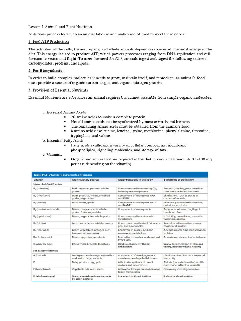Lesson 1 Animal and Plant Nutrition