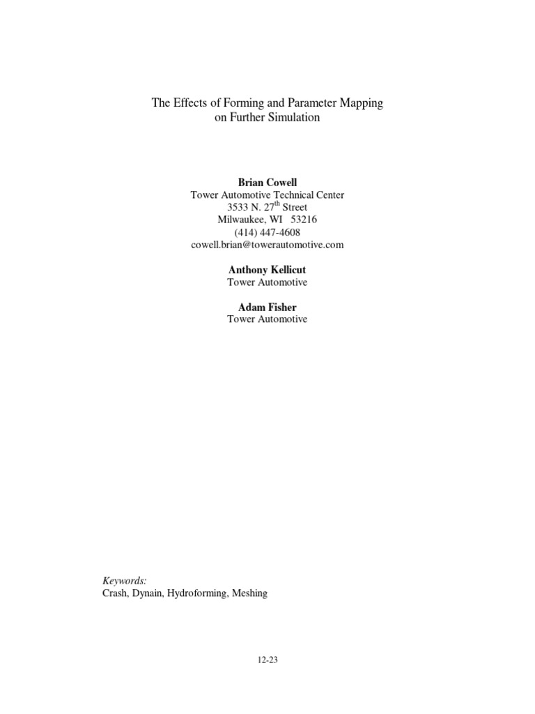 crash analysis. Tower Automotive has developed software to map forming simulation results