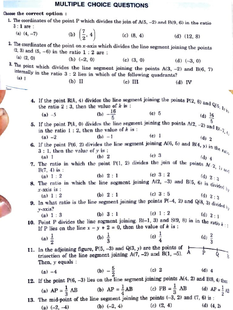 1. The co0ordinates of the point P which divides the join of A(5, -2) and B(9,