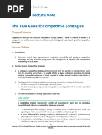Distinguishing Features of the Five Generic Competitive Strategies (Summary)