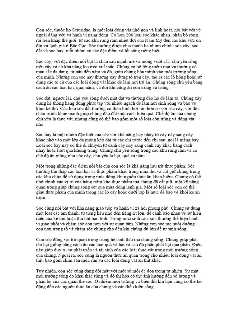 Tóm lại, con sóc là một phần quan trọng của hệ sinh thái, với vai trò trong việc duy trì
