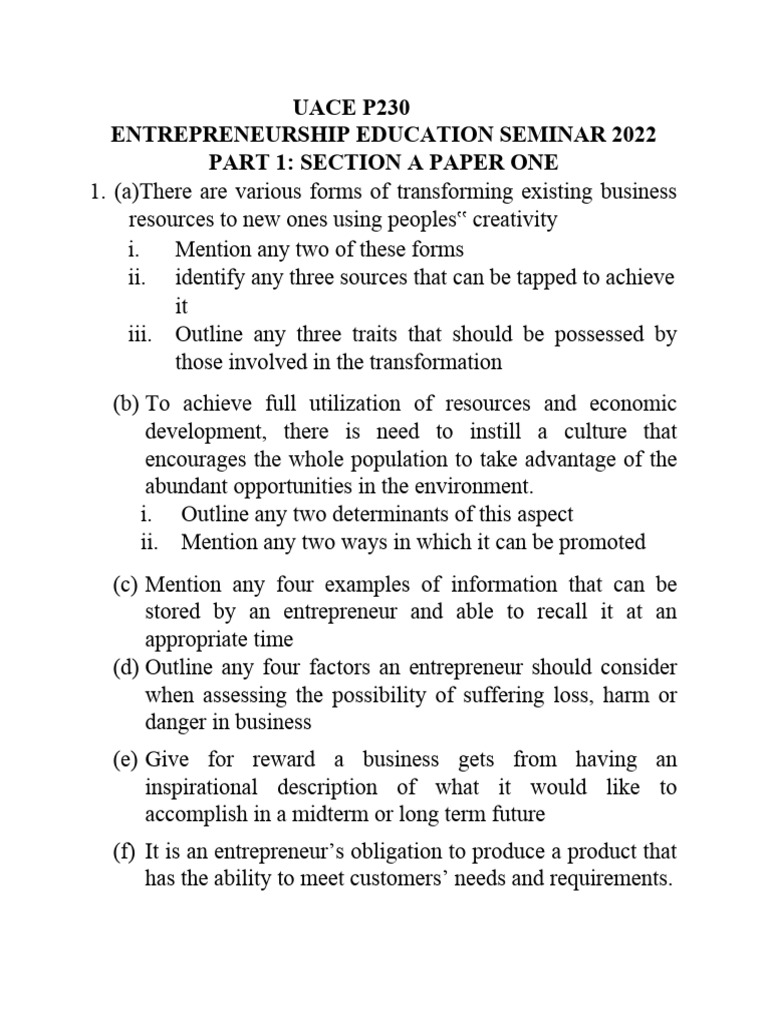 PART II: SECTION B P230/1 TOPIC 1: INTRODUCTION