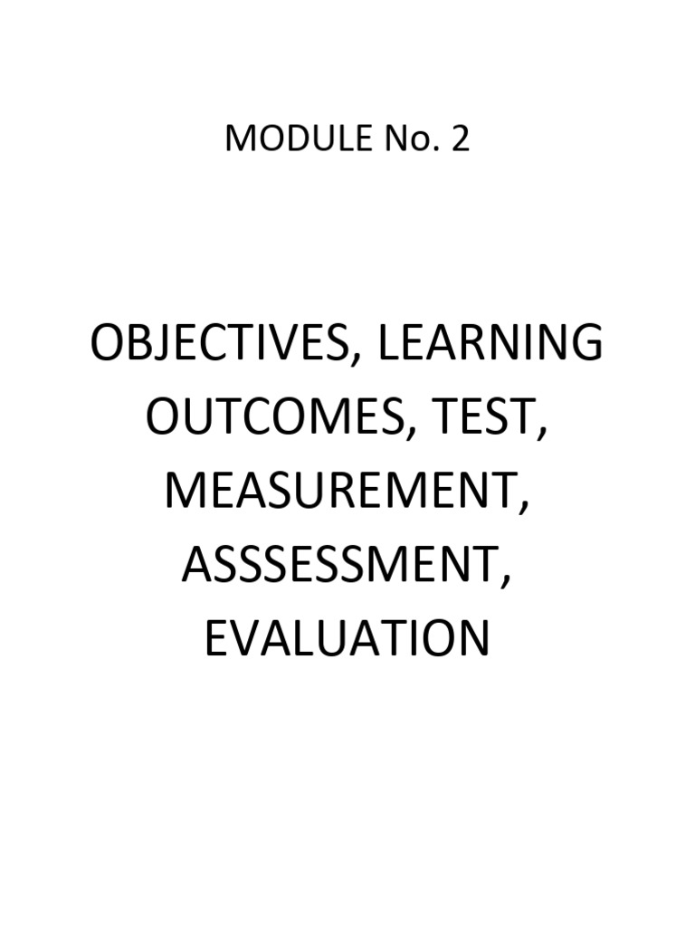 OBJECTIVES, LEARNING OUTCOMES, TEST, MEASUREMENT, ASSSESSMENT, EVALUATION