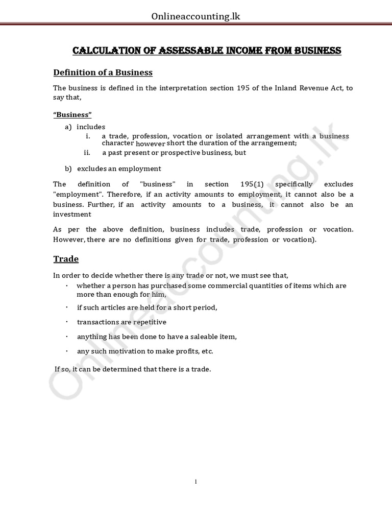 Calculation of Assessable income from business