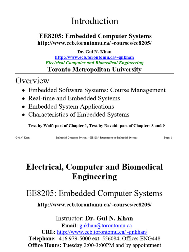 © G.N. Khan Embedded Computer Systems – EE8205: Introduction-to-Embedded Systems Page: 2