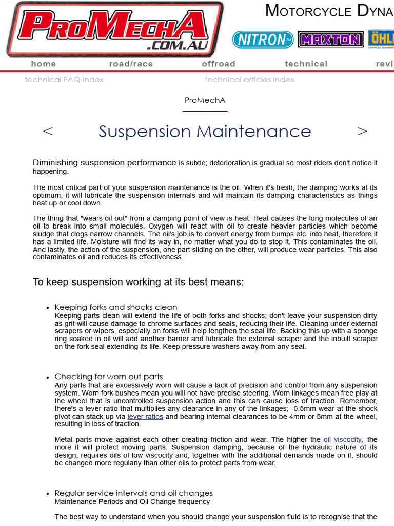 The most critical part of your suspension maintenance is the oil. When it's fresh, the damping works at its