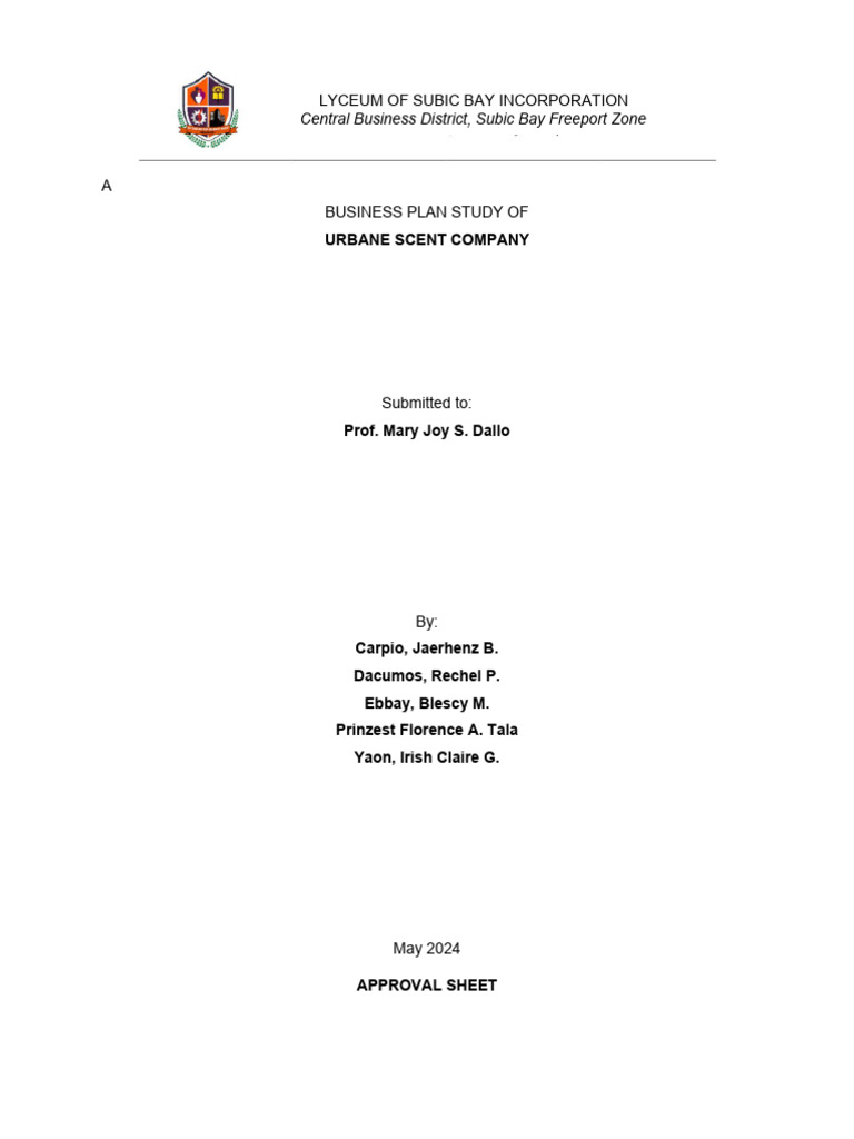Business Planning, this research entitled “URBANE SCENT COMPANY” has been prepared