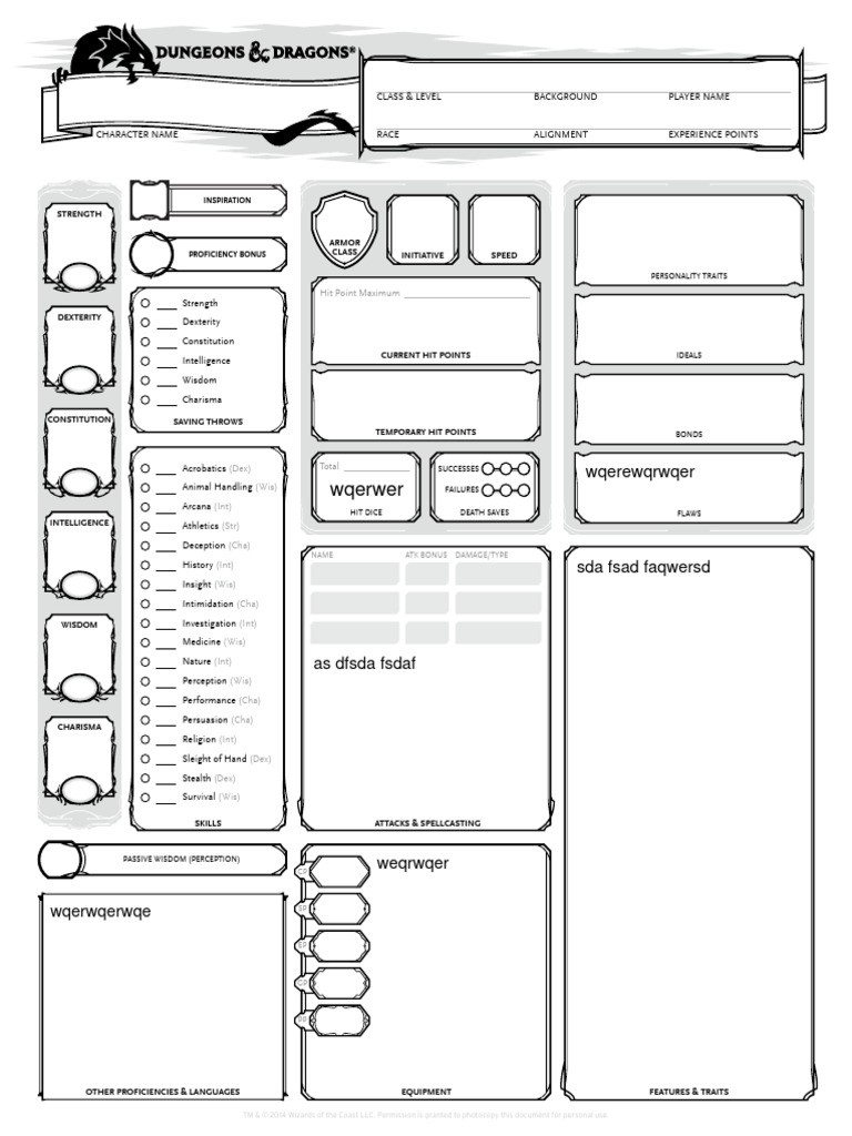 CLASS & LEVEL BACKGROUND PLAYER NAME