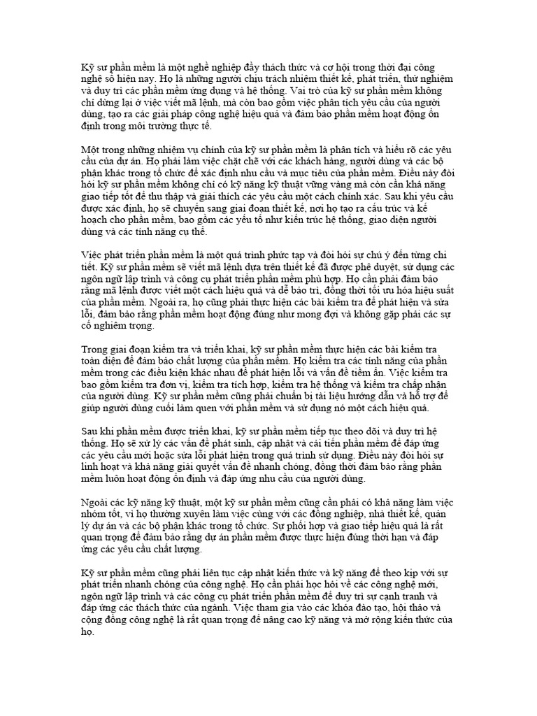 Kỹ sư phần mềm là một nghề nghiệp đầy thách thức và cơ hội trong thời đại công