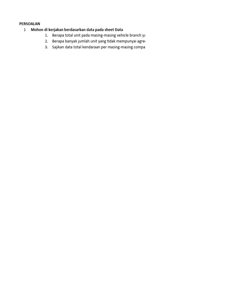 1 Mohon di kerjakan berdasarkan data pada sheet Data
