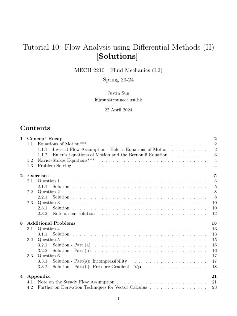 1.1.2 Euler’s Equations of Motion and the Bernoulli Equation . . . . . . . . . . 3