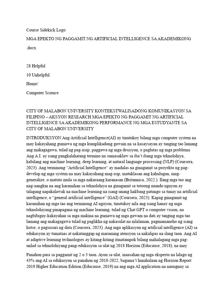 FILIPINO – AKSYON RESEARCH MGA EPEKTO NG PAGGAMIT NG ARTIFICIAL