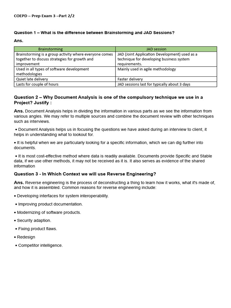 Question 1 – What is the difference between Brainstorming and JAD Sessions?