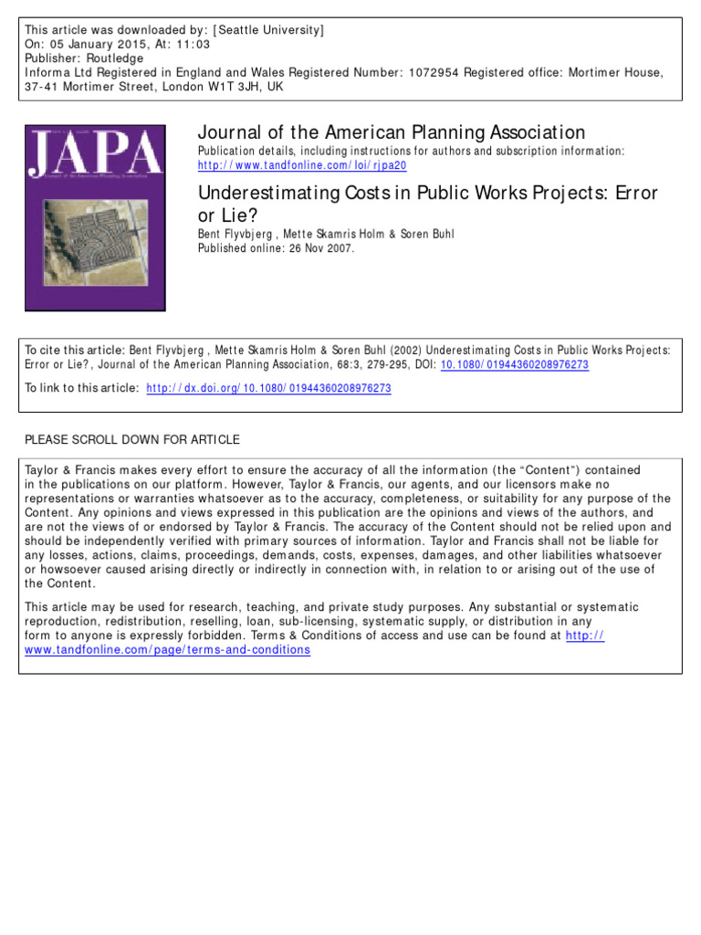 To cite this article: Bent Flyvbjerg , Mette Skamris Holm & Soren Buhl (2002) Underestimating Costs in Public Works Projects: