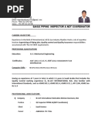 fabrication of piping erection, and inspection. NDT candidate and quality assurance