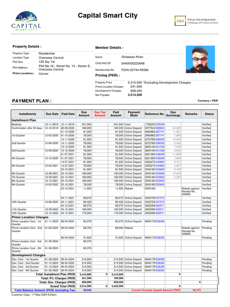 Total: Installment Plan (PKR) 2,415,000 0 2,415,000 0