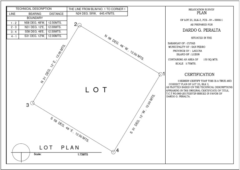 3-4 S58 DEG. 48'E, 12.50MTS.