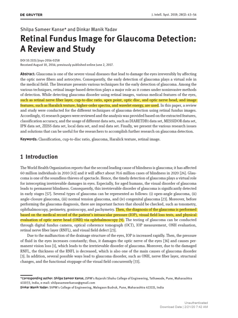 44 S.S. Kanse and D.M. Yadav: Retinal Fundus Image for Glaucoma Detection