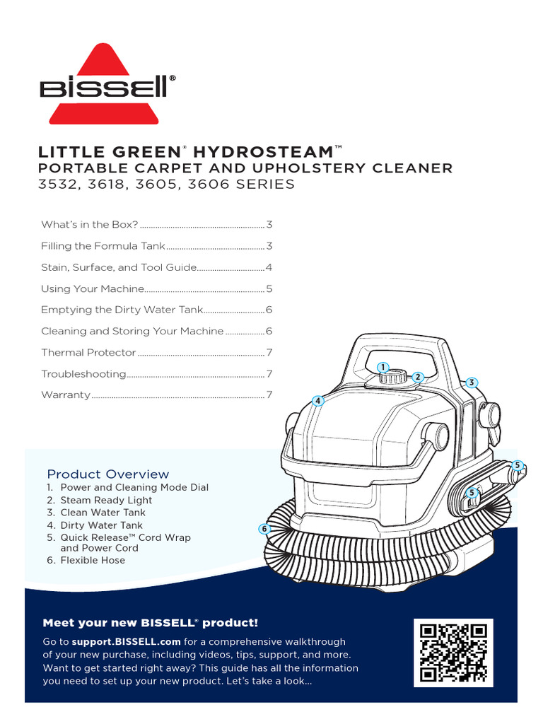 Limited 3-year warranty, may vary by state. Visit support.BISSELL.com or call 1-800-237-7691 for