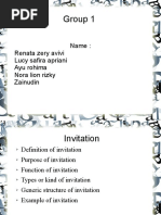 invite someone to attend or come to event.The generic structures of invitation are: Event title,