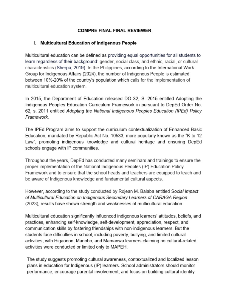 I. Multicultural Education of Indigenous People