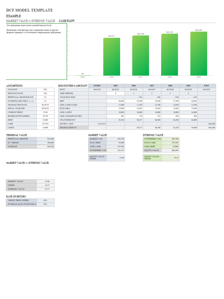DEBT 55,000 UNLEVERED FCF 36,518 38,217 40,380 42,250 44,400