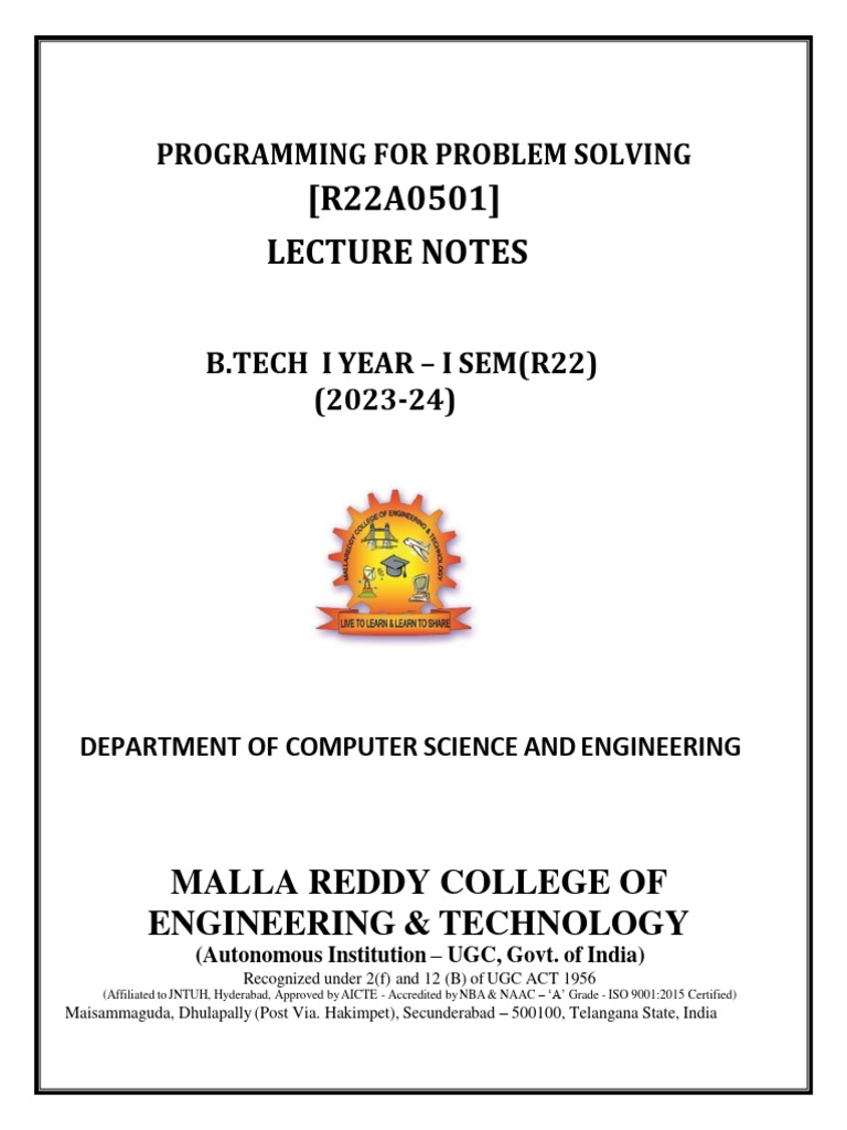 UNIT –I Introduction to Problem Solving, Basics of C 6-47