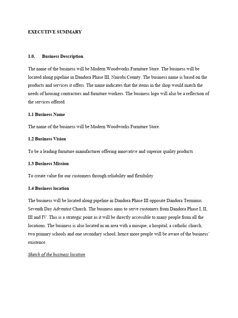 The name of the business will be Modern Woodworks Furniture Store. The business will be