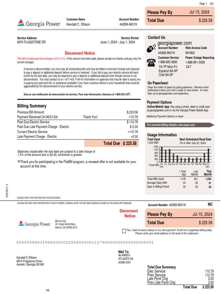 Total Due $ 225.58 1,244 kWh On or after July 22, 2024