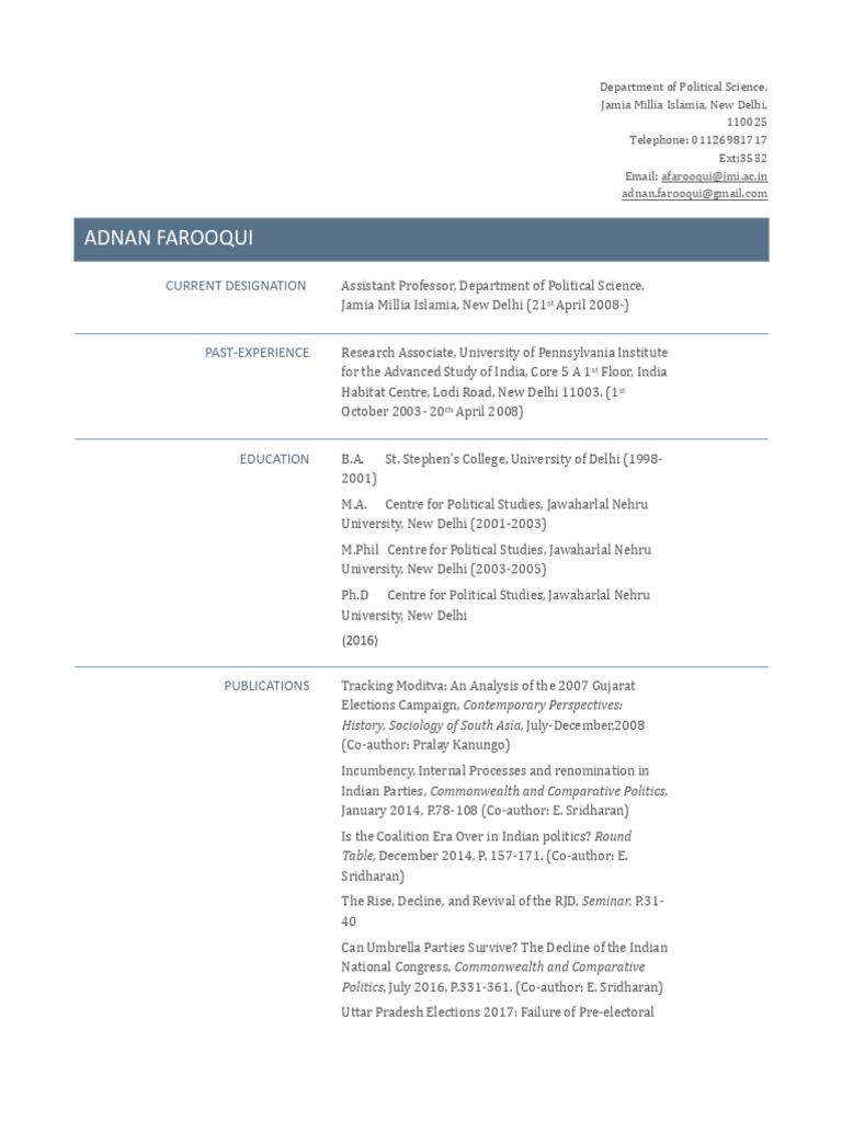 CURRENT DESIGNATION Assistant Professor, Department of Political Science,