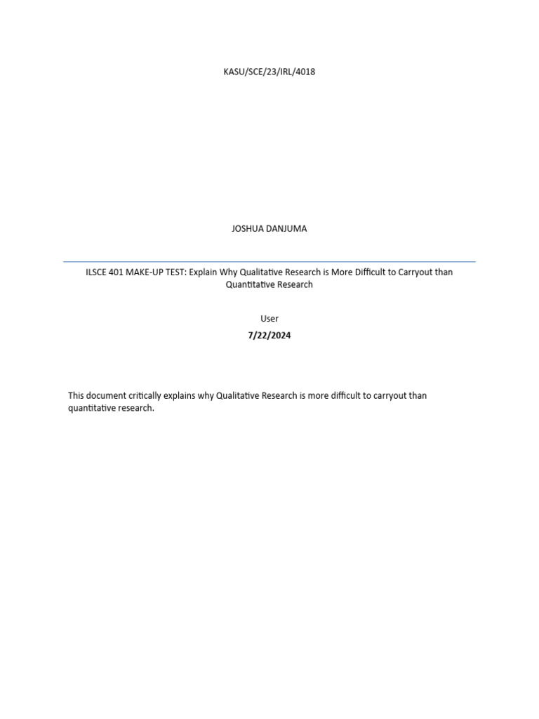 ILSCE 401 MAKE-UP TEST: Explain Why Qualitative Research is More Difficult to Carryout than