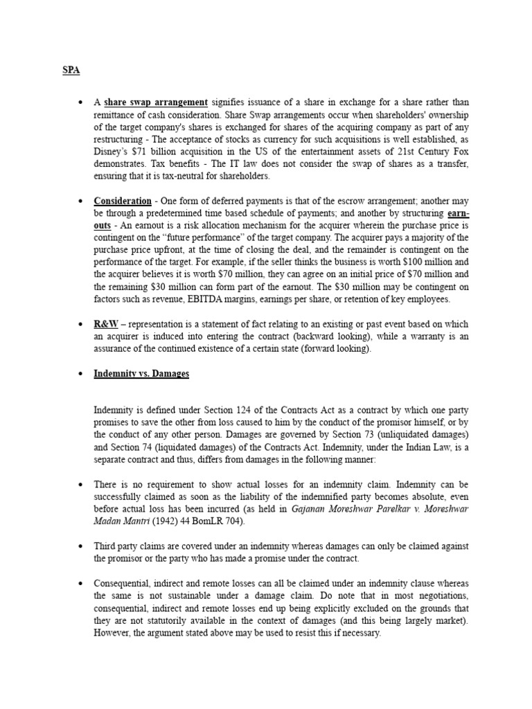 remittance of cash consideration. Share Swap arrangements occur when shareholders' ownership