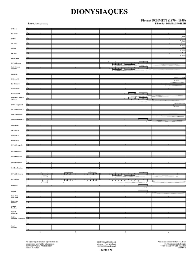All rights or performance, reproduction and DIONYSIAQUES Op. 62 Authorised Editions Robert MARTIN