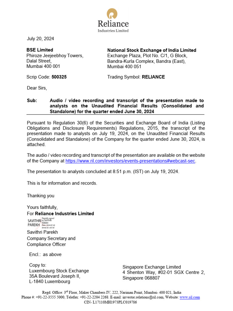 of the Company at https://www.ril.com/investors/events-presentations#webcast-sec.