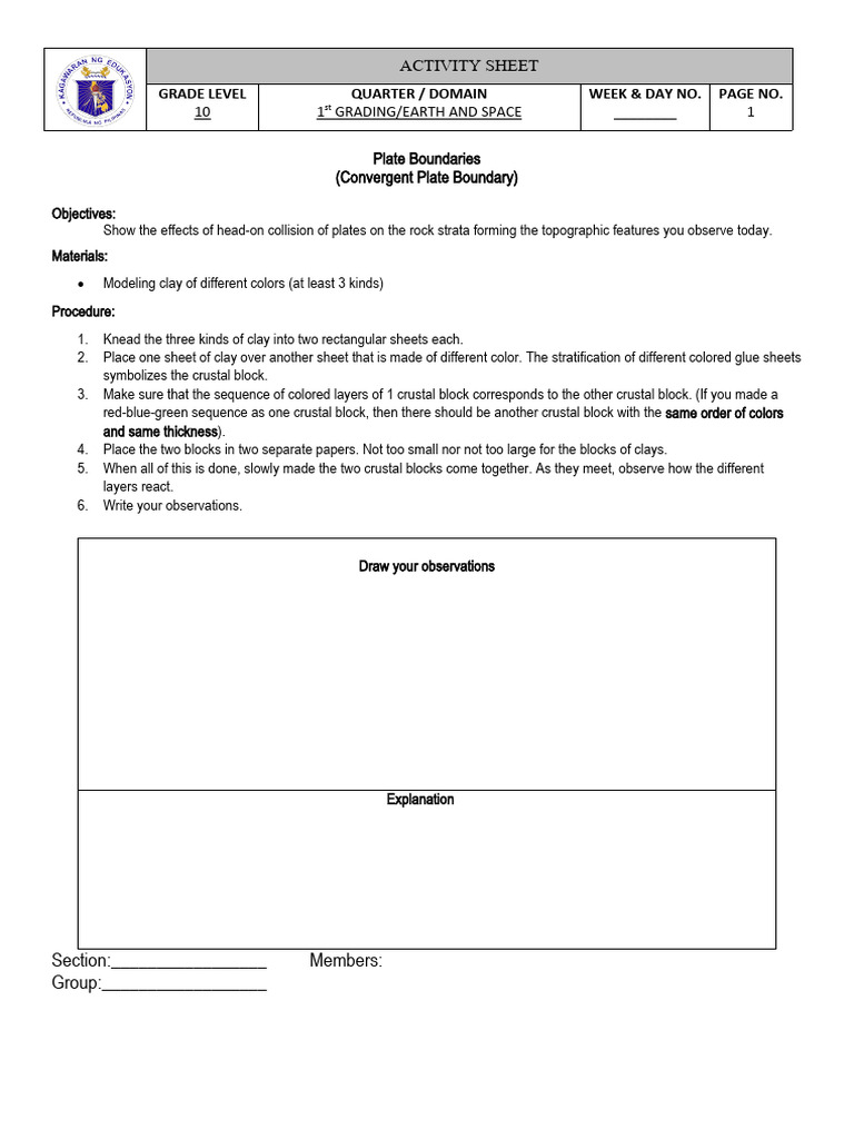 Q2. If the strips of clay represents the earth’s lithosphere,