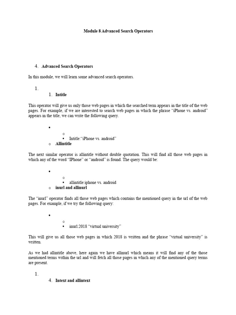 This will give us all those web pages in which 2018 is written and the phrase “virtual university” is