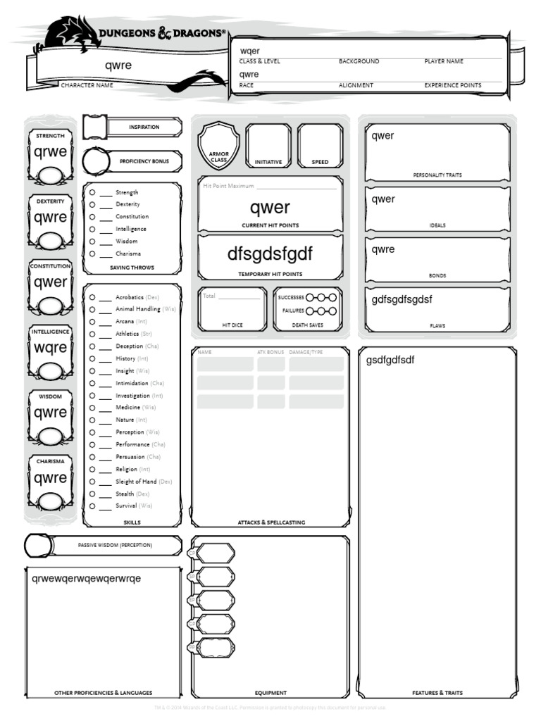 CLASS & LEVEL BACKGROUND PLAYER NAME