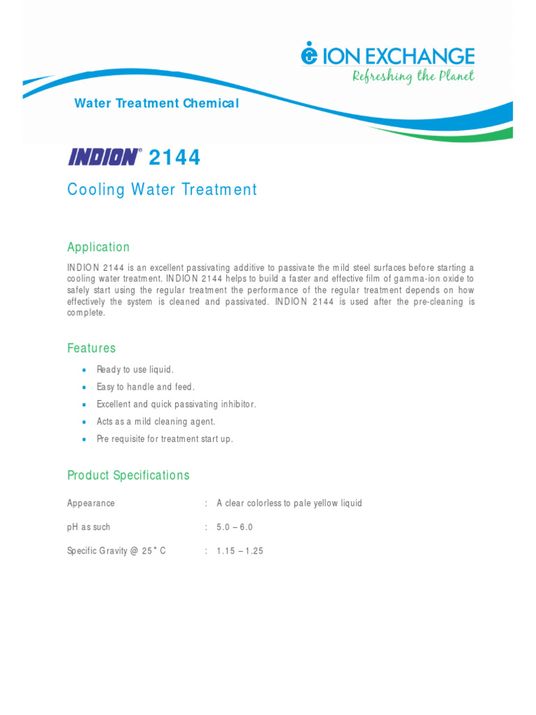 cooling water treatment. INDION 2144 helps to build a faster and effective film of gamma-ion oxide to