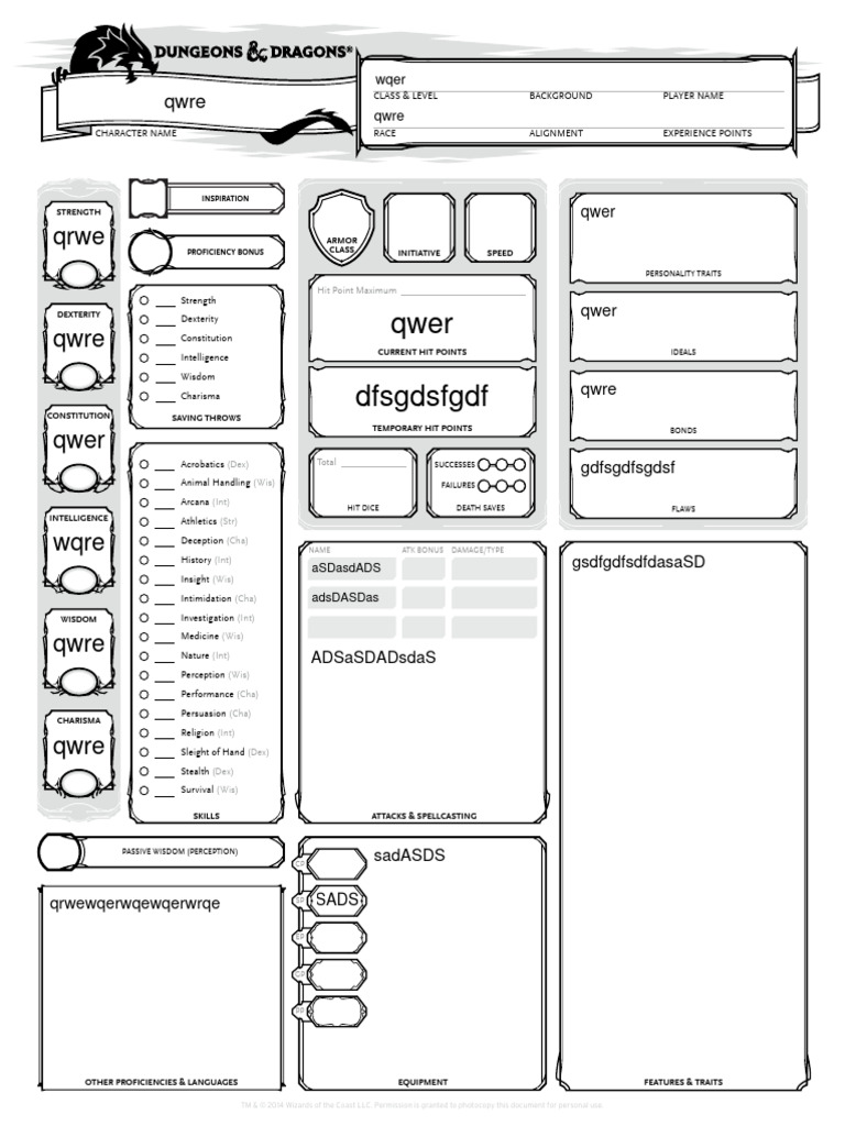 CLASS & LEVEL BACKGROUND PLAYER NAME
