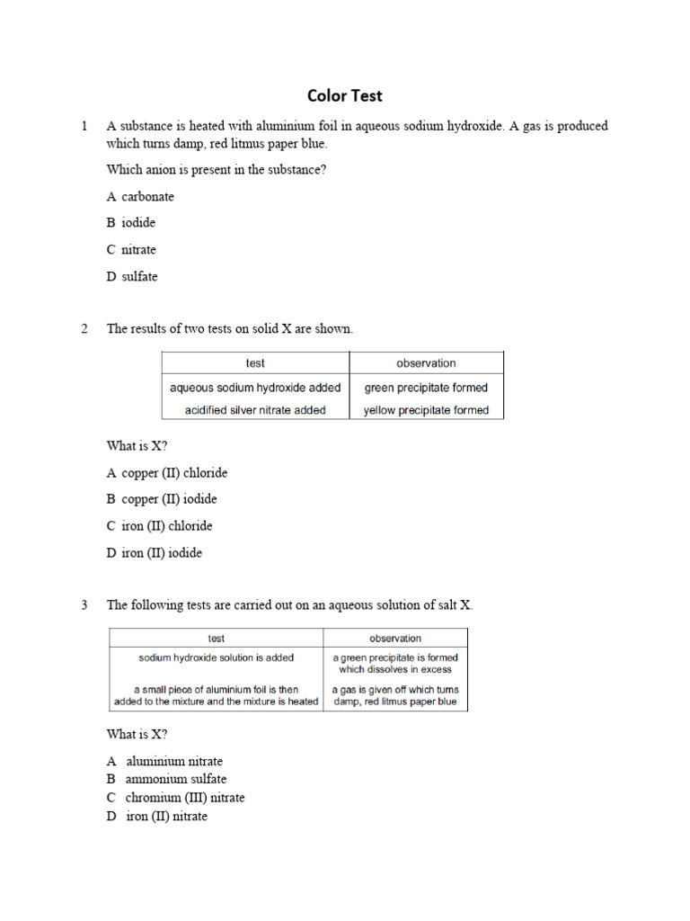 3 The following tests are carried out on an aqueous solution of salt X.