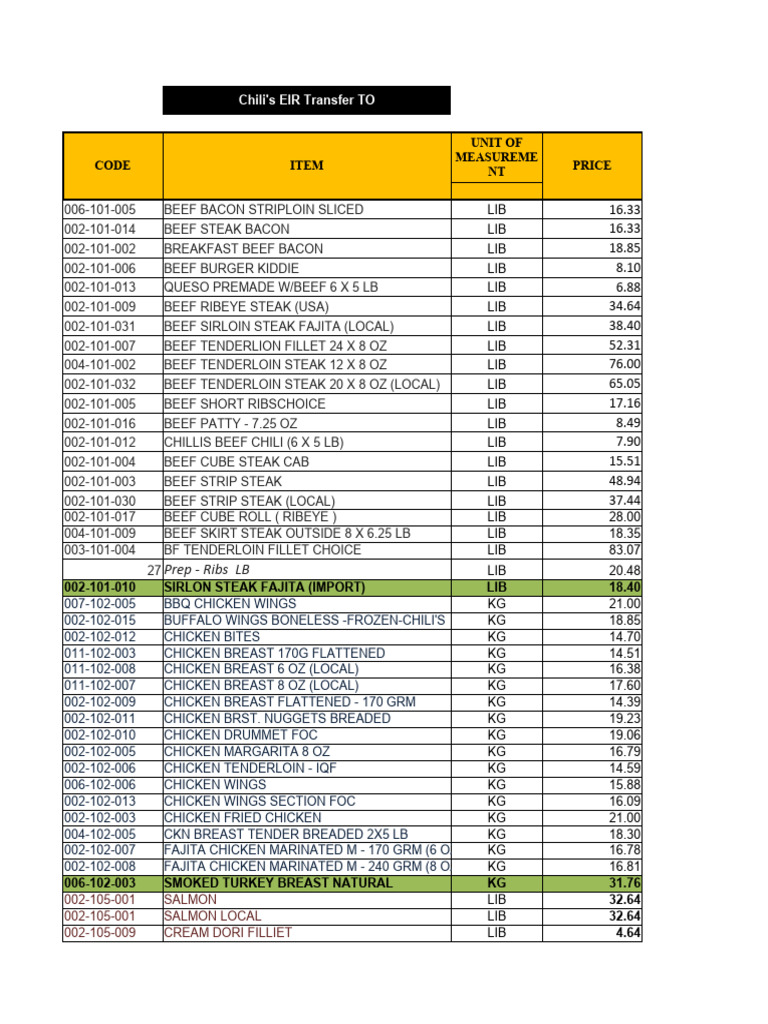 Chili's EIR Transfer TO