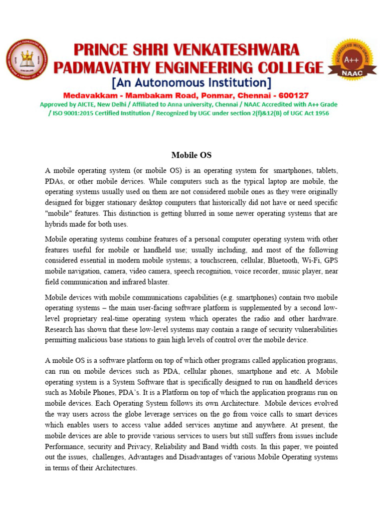 mobile devices. Each Operating System follows its own Architecture. Mobile devices evolved